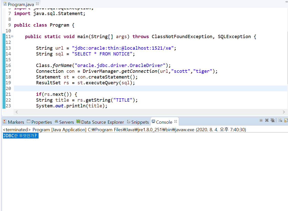 String sql = "SELECT * FROM NOTICE";