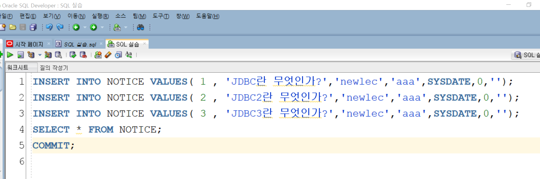 String sql = "SELECT * FROM NOTICE";
