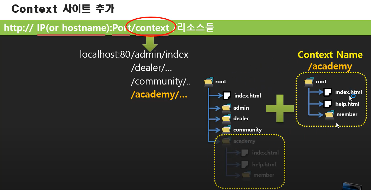 가상 경로 또는 가상사이트 라고 하는데 context 이다.
