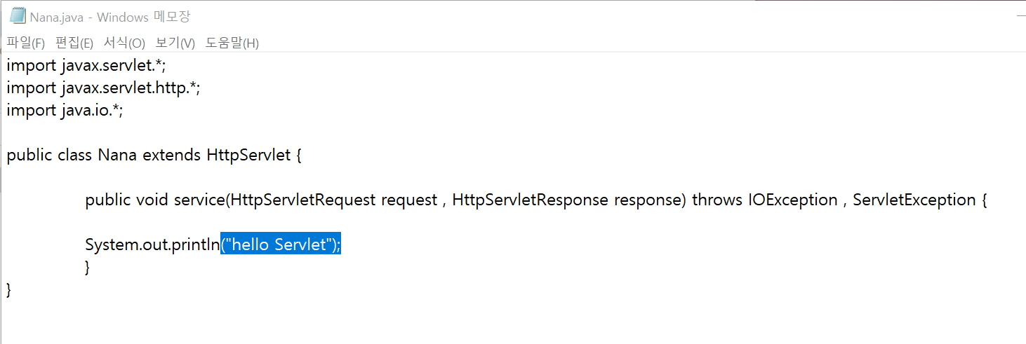 이 서블릿은 위에 na를 의미하고 클래스 Nana를 해당한다.