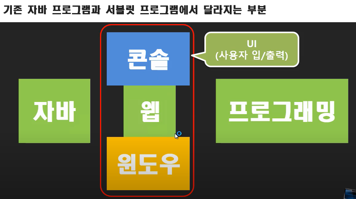 웹 이 담당하는 것은 UI 인데 콘솔UI , 윈도우 UI 가 있다.