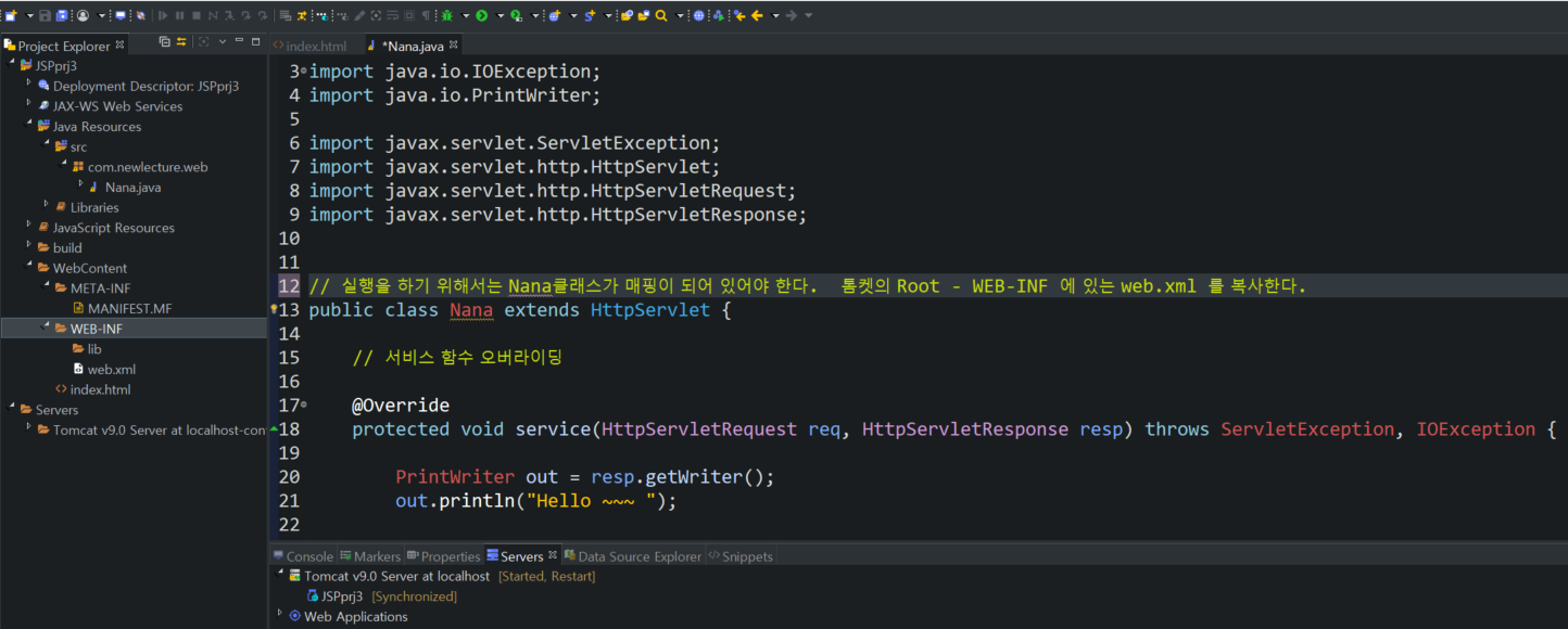 /hello 만 쳐도 com.newlecture.web.Nana 까지 나오게 해준다. ( 패키지명 까지 적어줘야 한다 . )