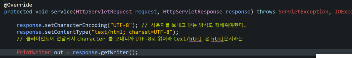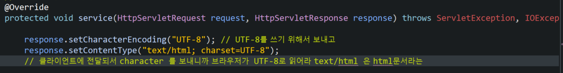 response.setCharacterEncoding("UTF-8"); // utf-8를 쓰기 위해서 보내고