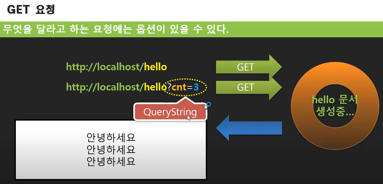 달라고 하는 요청에서도 추가적인 옵션을 질의할수있다. 이것이 웹에서 가능하다 이것을 전달하면 서버에서 일괄적인 것을 돌려주는것이아니라 추가적인 옵션에 맞는 문서를