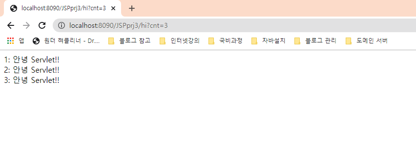 out.println((i+1)+": 안녕 Servlet!! <br >");