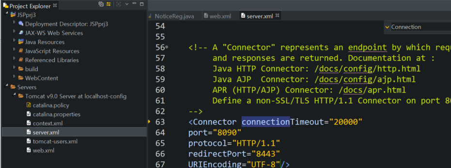귀찬으면 톰켓 에 있는 server.xml 에다가 <Connection port 에