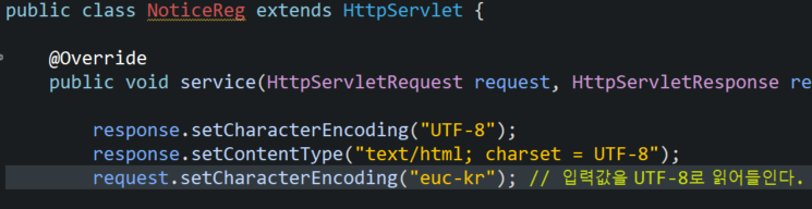 Servlet 에 입력도구에다가 UTF-8를 설정한다.