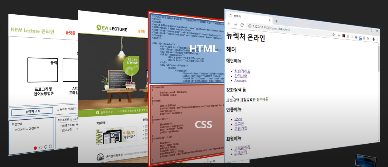 구조화된 컨텐츠를 가지고 스타일 등등 CSS을 입히고 나면 오른쪽 처럼 나타나게 된다.