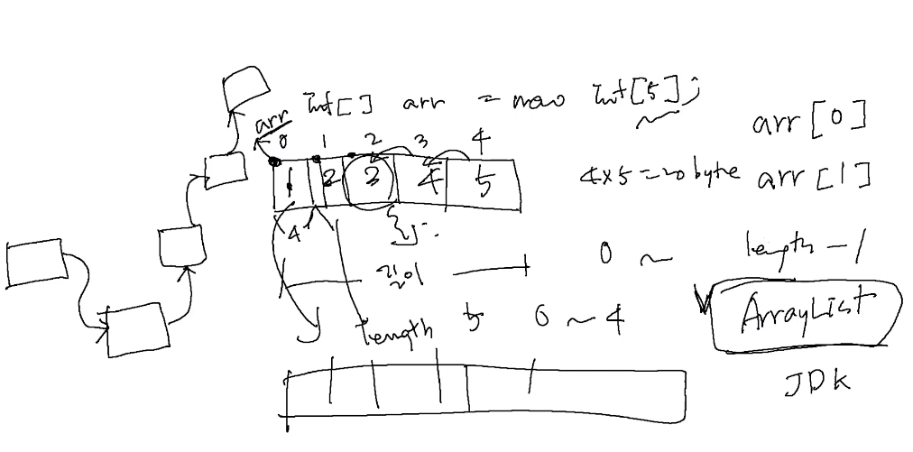 Int[] arr = new int[5]; 총 20바이트가 잡힌다.