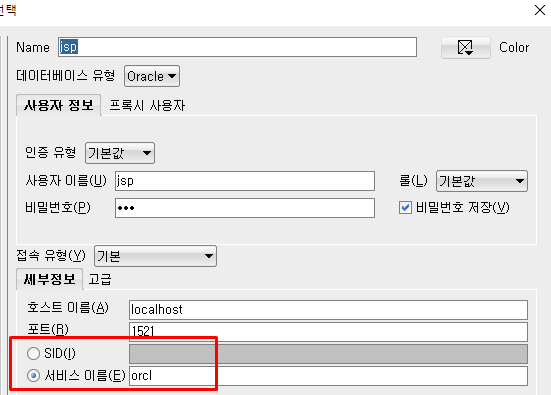 내가 필요한 SID나 서비스이름이 여기 빨간박스처럼 2개 설정되어있어야한다.