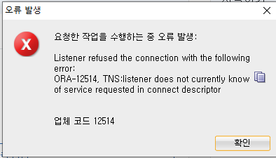 ORA-12514, TNS:listener does not currently know of service requested in connect descriptor 라는 에러가 발생했다...