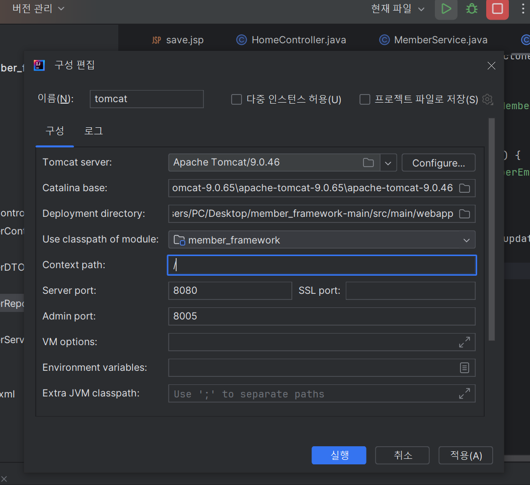 인텔리제이 , 톰켓 서버 연결