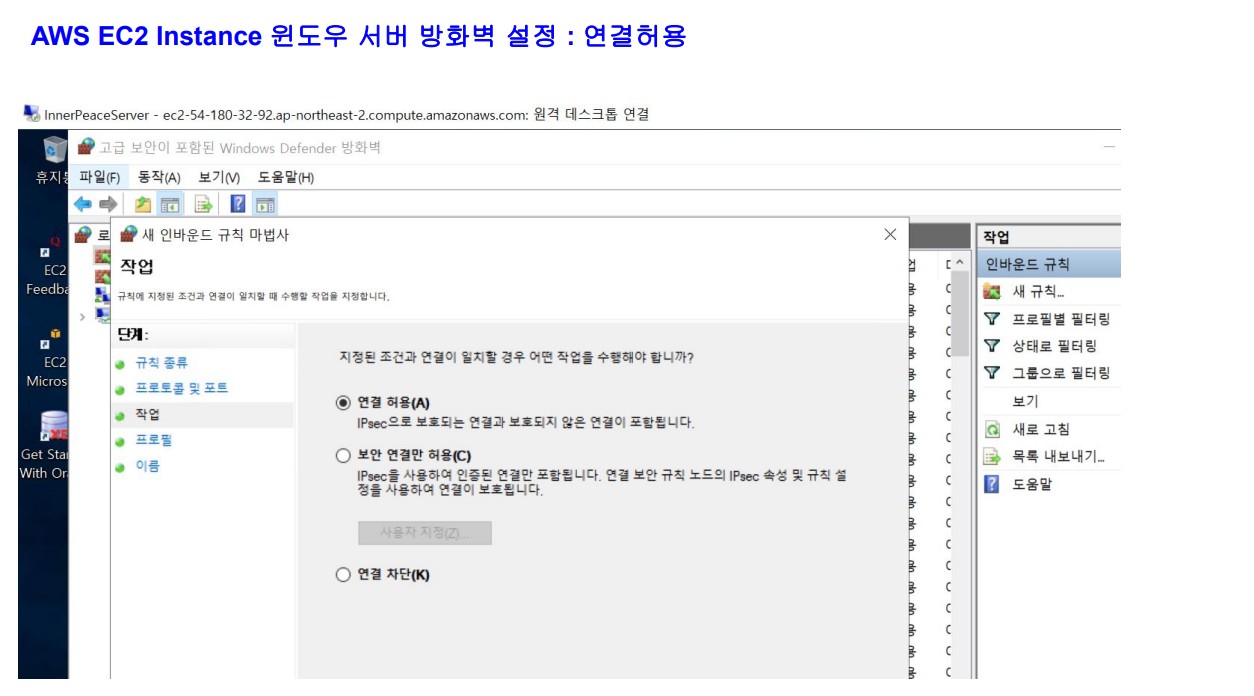 원격 데스크톱 파일(RDP: Remote Desktop Protocol)로 접속합니다. 인스턴스 생성할 때 만든 키-페어 암호해독한 것이 비밀번호가 됩니다.