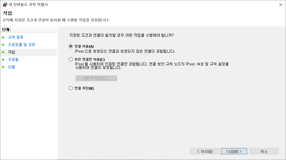 고급설정에서 인바운드 규칙 - 새 규칙에서, 오라클 포트를 열어준다. (오라클 포트 번호는 1521)