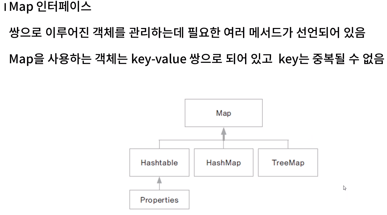 Put 이나 get , containsKey , containsValue 등을 썻고 key는 중복될수없고 유일하다